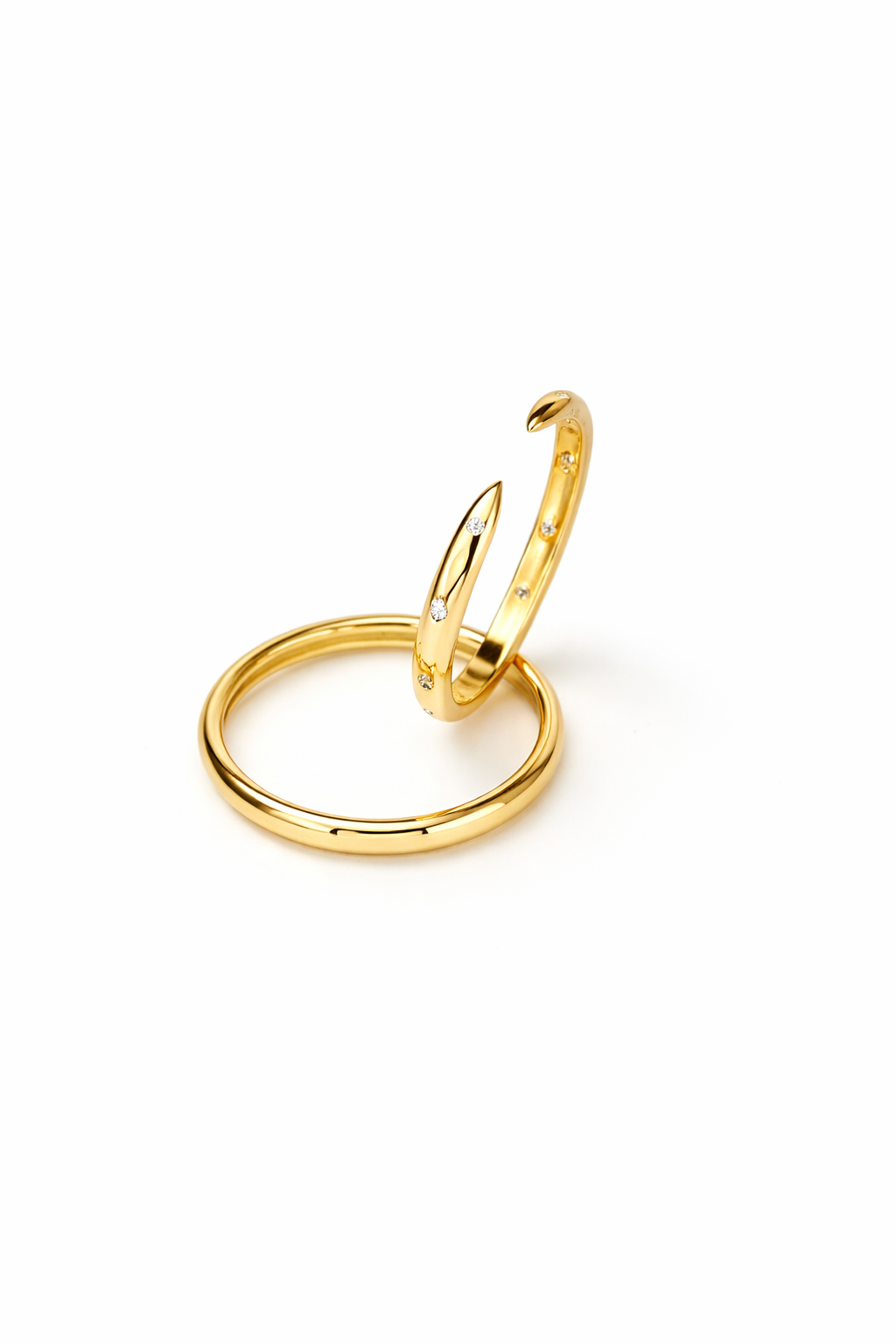 A sleek, tapered bypass “wrap” silhouette that offers a comfortable, adjustable feel and a high-end minimalist aesthetic.Engineered for longevity; this piece contains no plating or filling, ensuring it remains a staple in your collection for generations.