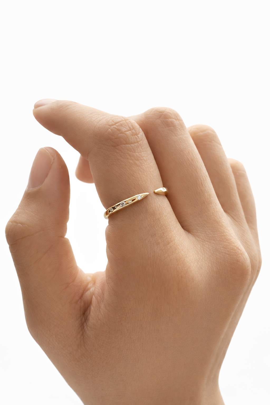 The Lewru Open Ring is a tribute to the celestial cycles that guide the nomadic spirit through the night. Named after the moon in Pulaar, its open bypass silhouette mirrors the graceful, silver-lit curves of a lunar crescent. This piece serves as a luminous anchor, blending the strength of solid gold with the ethereal sparkle of hand-set diamonds—a constant companion for those who find beauty in the journey and meaning in the stars.