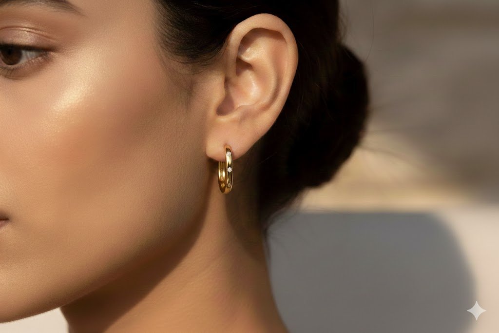 The Naangai Diamond Hoops are a signature of effortless luxury. Wear them alone for a quiet, golden radiance or stack them with our Hoodere studs to create a personalized celestial narrative.
